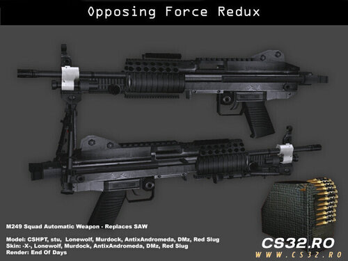 A fully reworked port of the Half-Life: Opposing Force M249 SAW for CS 1.6 Zombie Mod.